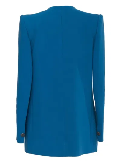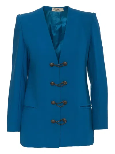 blue wool front button fastening V-neck two side welt pockets long sleeves Condition: GOOD. This previously owned and used item is in good condition with minimal signs of use. This may include fading of material or plating and scratches.