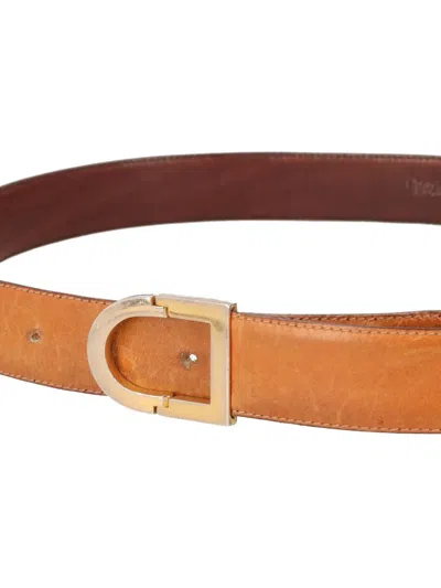 brown leather round gold-tone buckle punched holes Condition: GOOD. This previously owned and used item is in good condition with minimal signs of use. This may include fading of material or plating and scratches.