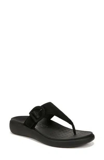 Balanced on a cushy dual-density footbed with a deep heel cup for maximum stability, this suede thong-post sandal straddles the line between casual and chic. 1 1/2" heel; 3/4" platform ( size 8.5) Cushioning: absorbs impact and distributes weight for consistent, buoyant comfort under each step Cushioned EVA footbed with arch support Leather upper/synthetic lining and sole Imported