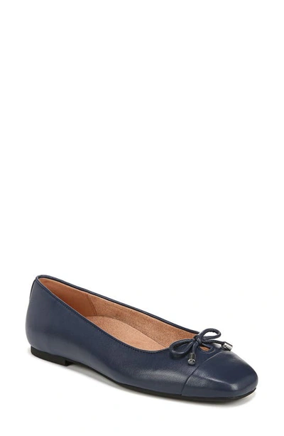 A squared-off cap toe adds subtle charm to this minimalist leather ballet flat decorated with a dainty bow and keyhole cutout.