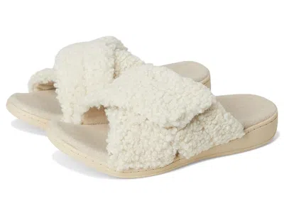 VIONIC Relax Ii Slides - Women's Slippers : Cream White Fabric : Experience ultimate luxury in the updated VIONIC Relax II Slides. With its cushy footbed, you'll love the endless support and unmatched comfort you've been craving. ; Faux fur or faux shearling upper. ; Polyester lining and ethylene vinyl acetate insole. ; Built-in VIO MOTION Technology footbed featuring contoured arch support, with shock-absorbing cushioning, deep heel cup to provide stability, and forefoot flexibility. ; Flexible ethylene vinyl acetate midsole. ; Adjustable hook-and-loop closure. ; Open, round toe silhouette. ; Durable synthetic outsole. ; Imported. Measurements: ; Heel Height: 1 2 5 in ; Weight: 10.1 oz ; Product measurements were taken using size 7, width M. Please note that measurements may vary by size. | VIONIC Relax Ii Slides Women's Slippers Cream White Fabric : 11 M, Polyester