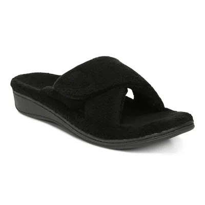 Keep your toes free and your soles supported with the classic adjustable Relax slipper. Designed in padded terry and faux fur for serious cuddliness. Featuring the same tried and tested FMT Technology as our sandals active and closed-in styles VIONIC slippers offer everyday support for at-home wear. Midsole: Flexible EVA absorbs shock reducing stress on feet ankles and knees. Footbed: Footbed is treated with antibacterial odour-resistant Ecofresh. Outsole: TPR with wave-patterned tread designed for indoor use. Research supports FMT Technology's success in reducing over-pronation which can help relieve associated common aches and pains such as heel pain knee pain and lower back pain.