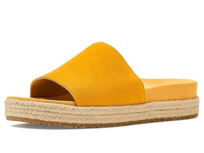 VIONIC Yasmina - Women's Sandals : Amber Yellow Suede : Step into the VIONIC Yasmina sandals and elevate everyday with breezy height, a lightweight feel, and wearable well-being. Designed for movement and crafted for those seeking arch support in their platform sandals, these heeled sandals fuse luxurious suede with a jute-wrapped edge, making them an essential for the modern woman's wardrobe. They are redefined for all-day movement and Northern California-inspired balance. Their built-in VIO MOTION Technology features contoured arch support with shock-absorbing cushioning, a deep heel cup to provide stability, and forefoot flexibility. These women's platform sandals are made of a suede upper, ethylene vinyl acetate insole, and polyurethane lining. The flexible ethylene vinyl acetate midsole absorbs shock, reducing stress on feet, ankles, and knees. These slide sandals make a versatile addition to your wardrobe. ; Open, round toe design. ; Platform heels. ; Synthetic rubber outsole. ; Imported. Measurements: ; Heel Height: 1 3 4 in ; Weight: 10.4 oz ; Platform Height: 1 1 4 in ; Product measurements were taken using size 7, width M. Please note that measurements may vary by size. | VIONIC Yasmina Women's Sandals Amber Yellow Suede : 10 M
