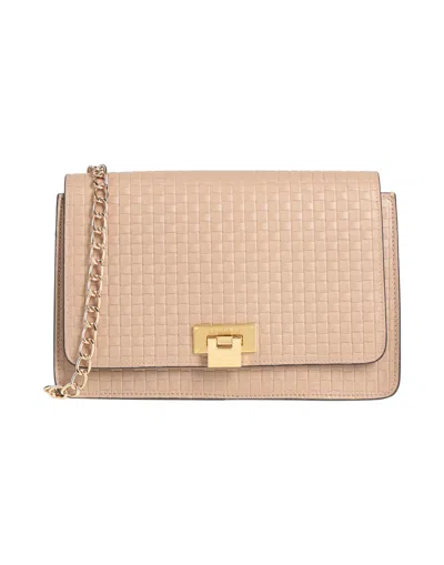 medium, cable stitch, brand logo, solid color, leather backing, framed closure, metallic straps, daytime, contains non-textile parts of animal origin, flap bag , Color: Light brown , Size: -