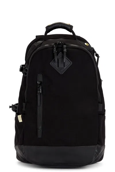 Visvim Cordura 20L Backpack in Black Canval exterior with leather trim and twill lining. Top wrap around zip closure. Two main compartments. Interior laptop pouch. Interior zip pouch. One exterior zip pocket and easy access side zip. Two side water bottle pouches. Measures approx 14 W x 20 H x 9 D. VVIF-MY25. 0125203003032. About the designer: