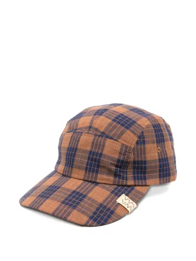 orange plaid pattern adjustable strap buckle fastening logo patch flat peak