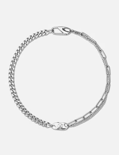Vitaly Trichord Multi-chain design Double-stacked cable links and heavy-duty Cuban link Branded ID-plate Custom carabiner clasp with angled, teardrop cut-out forms Waterproof Tarnish-proof Hypoallergenic Color: Stainless Steel