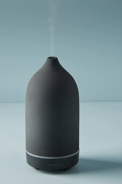This stone-look porcelain aromatherapy diffuser includes a variety of optional light settings for a multisensory feature in your home decor.What it does: This lovely diffuser steams essential oils, humidifying up to 500 square feet of your home with the mood-setting fragrance of your choice.Additional features: Built-in LEDs provide several lighting options, including dim and flickering candlelight. Choose between two timed settings for the diffuser: four hours of continuous misting or eight hours of intermittent misting (30 seconds on/30 seconds off). For safety, the diffuser automatically turns off when time is up or when water runs out.Includes: 6-foot power cord/adapter; custom measuring container.Sizing information: 3.5" x 7"; 2.6 lb.