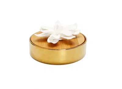 Gold Hemispheric Shaped Diffuser With White Flower, "lily Of The Valley" Aroma