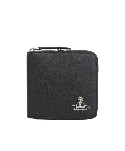 VIVIENNE WESTWOOD Grained Rectangular Wallets With Silver-tone Hardware In Black