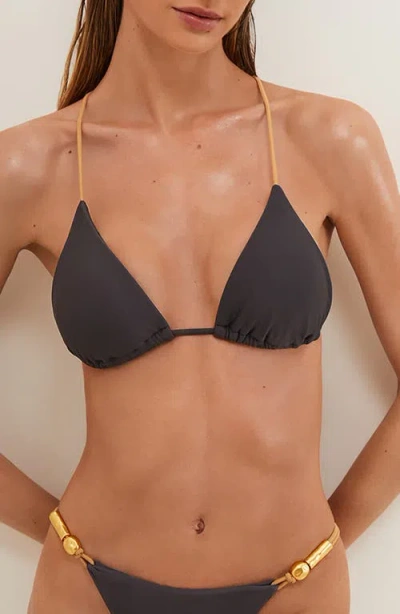 VIX SWIMWEAR Nancy T-back Beaded Triangle Bikini Top In Grey