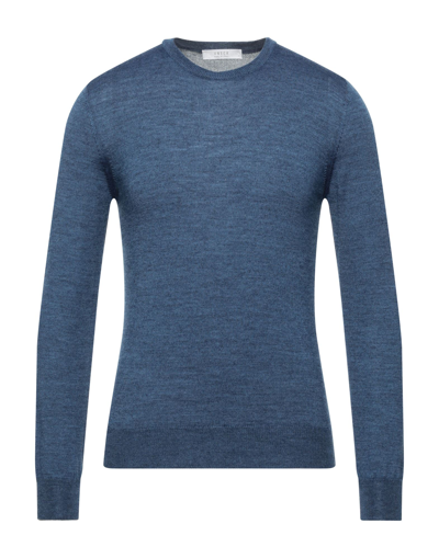 knitted, lightweight knit, no appliqués, solid color, round collar, long sleeves, no pockets, mélange , Color: Slate blue , Size: 36