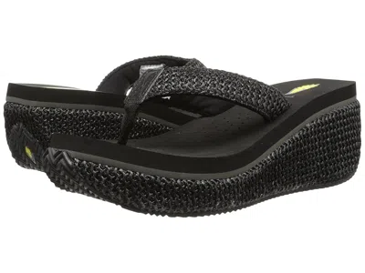 VOLATILE Island - Women's Wedge Shoes : Black : There's no such thing as island fever when you're having so much fun in the sun! Enjoy the lazy days of summer when you rock these vivacious textile VOLATILE sandals with breathable man-made lining and lightly cushioned, stationed insole! ; Easy slip-on thong-style with braided detail. ; Wrapped platform and wedge. ; Textured man-made sole. ; Imported. Measurements: ; Heel Height: 2 1 4 in ; Weight: 10 oz ; Platform Height: 1 in ; Product measurements were taken using size 8, width M. Please note that measurements may vary by size. | VOLATILE Island Women's Wedge Shoes Black : 11 M, Textile