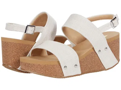 VOLATILE Summerlove - Women's Shoes : Bone Linen : Elevate your warm-weather style with the VOLATILE Summerlove. A strappy cork wedge sandal with a padded footbed and soft lining to keep you comfortable. ; Available in faux snake or linen straps with padded textile lining. ; Adjustable slingback strap. ; Cork trimmed wedge heel. ; Ultra comfort EVA insole. ; Rubber traction outsole. ; Metal buckle and studs. ; Man-made upper, lining, and sole. ; Imported. Measurements: ; Heel Height: 3 in ; Weight: 8 oz ; Platform Height: 1 1 2 in ; Product measurements were taken using size 9, width M. Please note that measurements may vary by size. | VOLATILE Summerlove Women's Shoes Bone Linen : 11 M, Textile