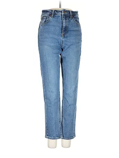 Volcom Jeans, Size: 27. Item Details: Blue, Hearts Pattern, Medium Wash, Straight Leg, Cropped, Boyfriend, High Rise, Women's Bottoms, Cotton/Elastane