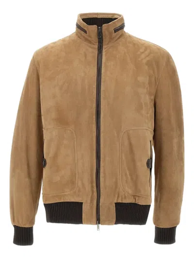 VOLFAGLI Zip-fastening Suede Jacket In Brown