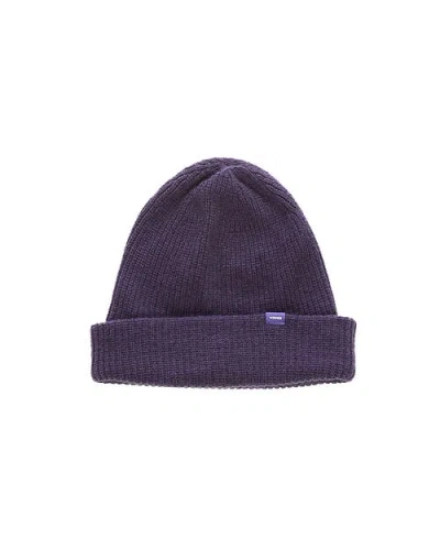 Minimalist wool-cashmere blend beanie cap with vowels logo tab. Blend of white cashmere and extra fine wool