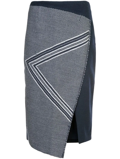Charcoal wool felt asymmetric pattern skirt from VOZ featuring a side zip fastening and an asymmetric hem. POSITIVELY CONSCIOUS: VOZ scores 4 out 5 by independent ethical brand rating agency Good On You. It partners with independent artisans in Chile and has a mission to improve social conditions. It makes products by hand to reduce climate impact and uses low impact non-toxic dyes in all its products.