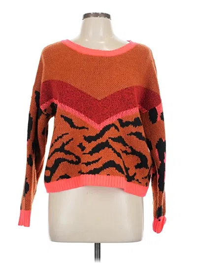 Vylette Pullover Sweater, Size: Large. Item Details: Orange, Animal Print Pattern, Crew Neck, Long Sleeve, Junior Tops, Acrylic/Polyester