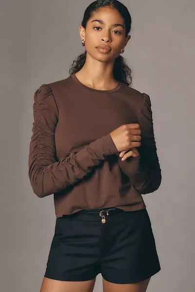 Crafted from jersey knit fabric, Walter Baker's Dot Top showcases gathered long sleeves and a classic crew neck. Dot Top by Walter Baker in Brown, Women's, Size: XL, Polyester/Cotton/Elastane at Anthropologie