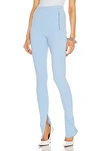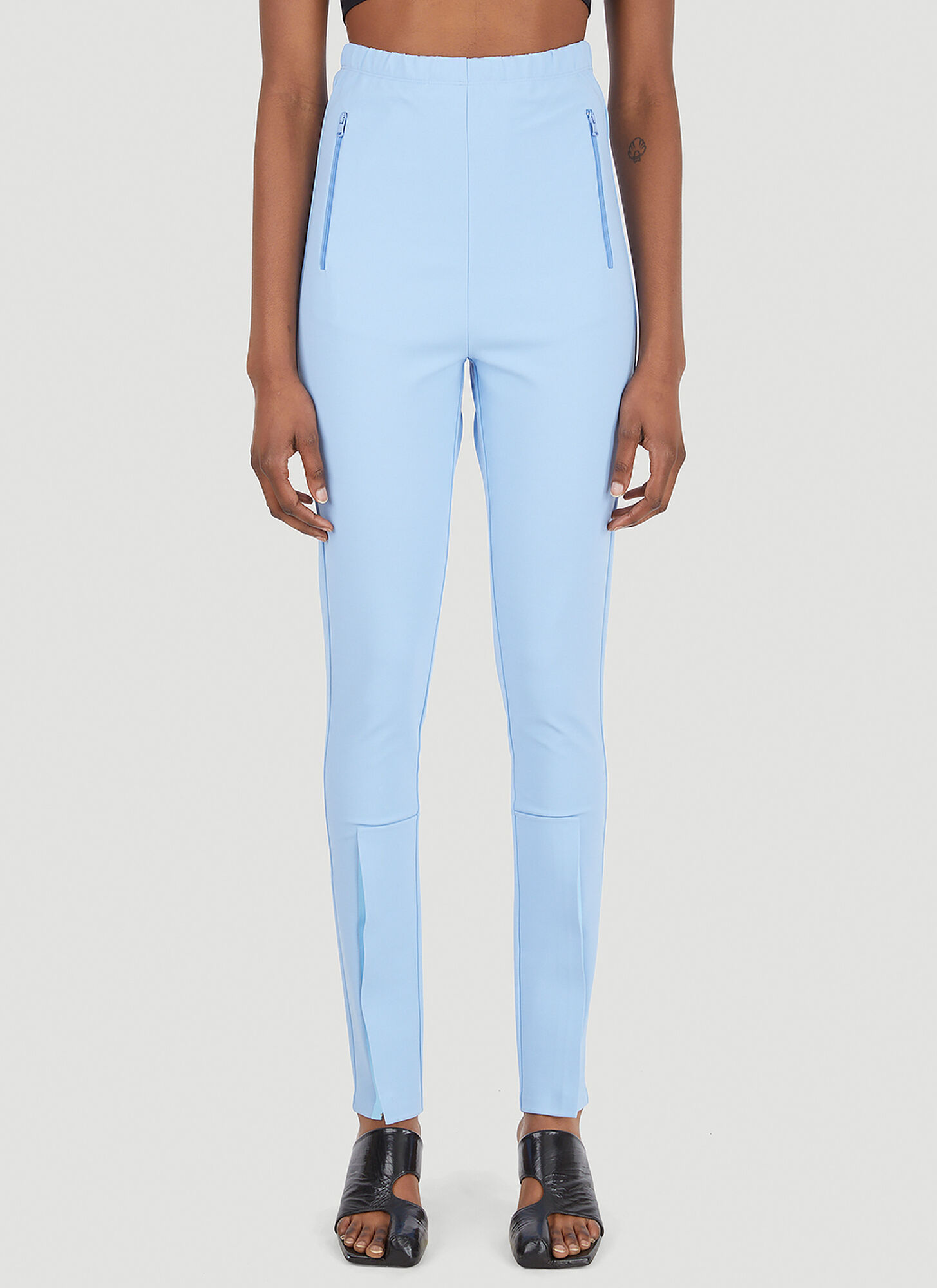 WARDROBE.NYC Side Zip Legging in Mid Blue - Blue. Size XXS (also in M, S, XL, XS). 65% viscose 30% nylon 5% elastane. Made in Portugal. Hand wash. Elasticized waistband. Side zip pockets. Zippered cuffs. WNYF-WP12. W2006R03. About the designer: WARDROBE.NYC is a conceptual composite of luxury essentials, distilled into their purest and most versatile form. Designed for a modern urban life, the line consists of timeless wardrobe staples in a practical minimalist style. The label was founded in 2017 by Josh Goot and Christine Centenera, who wanted to create a better alternative to the current fashion system. Instead of the relentless production-consumption cycle, WARDROBE.NYC dreamed up an improved business model that is more egalitarian and efficient while being less wasteful. The result? Impeccably made and beautifully designed everyday essentials that transcend seasons.