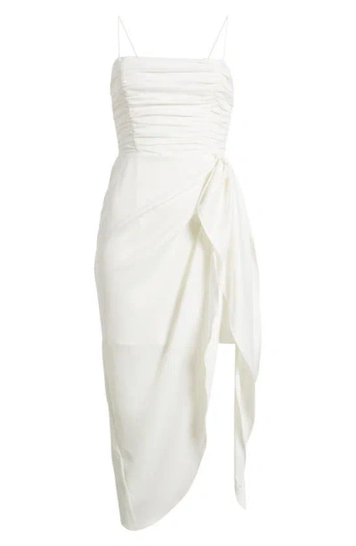 WAYF Ruched Bodice Satin Midi Dress In Ivory