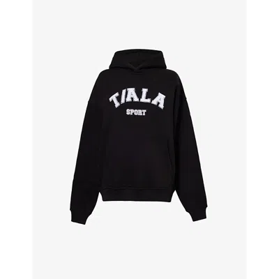 We Are Tala cotton-blend hoody67% cotton, 33% polyesterSlips onRelaxed fit, hood, dropped shoulders, long sleeves, brand text at front, kangaroo pocket at front, ribbed trimsMachine wash coldTrue to sizeModel is 5ft 10in/1.78m and wears a size smallMidweight, slight stretch