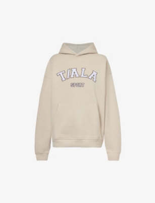 We Are Tala cotton-blend hoody67% cotton, 33% polyesterSlips onRelaxed fit, hood, dropped shoulders, long sleeves, brand text at front, kangaroo pocket at front, ribbed trimsMachine wash coldTrue to sizeModel is 5ft 10in/1.78m and wears a size smallMidweight, slight stretch