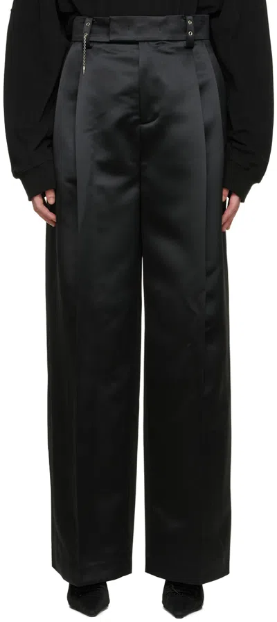 Polyester satin trousers. Graphic hardware at belt loops. · High-rise · Belt loops with eyelets · Zip-fly · Pleats at front waistband · Four-pocket styling Supplier color: Black