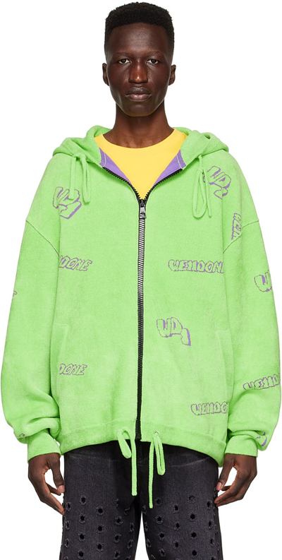 Viscose and nylon-blend fleece jacket. Jacquard knit logo throughout. · Zip closure · Dropped shoulders · Drawstring at hood and front hem · Rib knit hood, cuffs, and hem · Unlined Supplier color: Lime