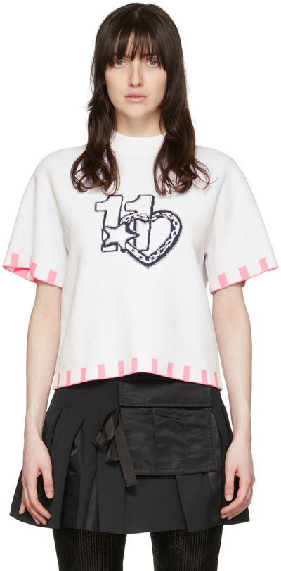 Viscose-blend bouclé jersey T-shirt. Stripes throughout. · Jacquard graphic at chest · Rib knit crewneck, cuffs, and hem · Rubberized logo patch at back collar Supplier color: Pink