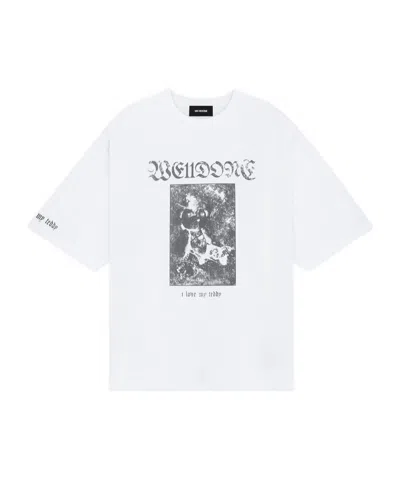 - Ribbed crewneck - Dropped shoulders - Crystal-embellished graphic print at front - Text print at sleeve and back