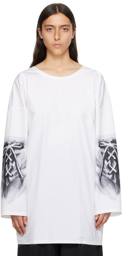 Cotton poplin T-shirt. Raw edge throughout. · Crewneck · Graphic printed at sleeves · Concealed zip closure at back Supplier color: White