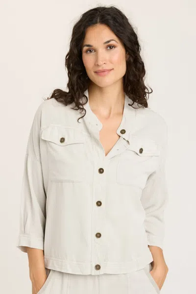 Now available in Taissa Twill, Colbert offers lightweight outerwear with a high collar, and buttons down the center and at the flapped breast pockets. A slightly boxy fit and three-quarter sleeves finish off this clean, classy look.Taissa Twill: 70/30 Rayon/Tencel.Center Front: ~18.75"Center Back: 20.25"Color Description: Faded frost greyPreshrunkMachine washableImportedMODELScarlett is wearing size SmallHeight: 5'10" | Bust: 34C | Waist: 26" | Hip: 36"