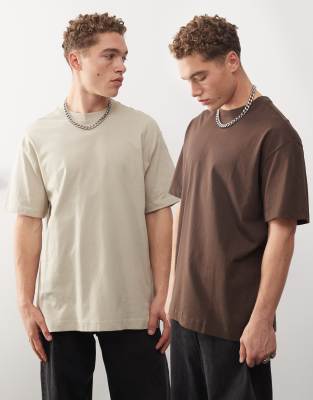 WEEKDAY 2-pack Oversized T-shirts In Neutral