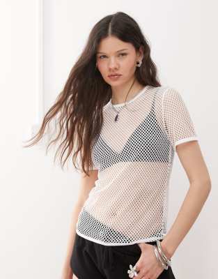 Top by Weekday Crew neck Short sleeves Mesh design Regular fit