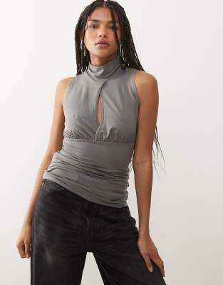 WEEKDAY Sleeveless Turtleneck Top With Keyhole Detail In Gray
