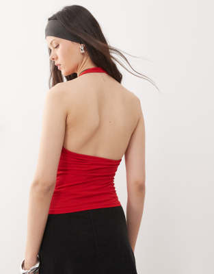 WEEKDAY Slim Fit Square Halter Neck Top In Red