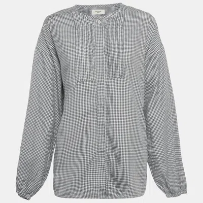 Pre-owned Black Checked Cotton Button Front Tunic L