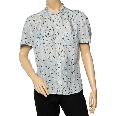 Pre-owned Blue Printed Silk Button Front Top Xl