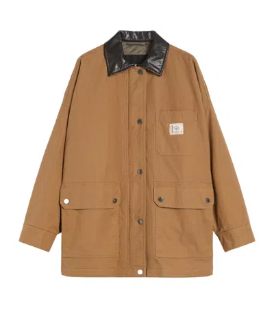 WEEKEND MAX MARA Leather-collared Patch-pocket Jacket In Brown