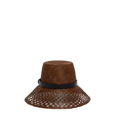 WEEKEND MAX MARA Perforated Raffia Hat In Brown