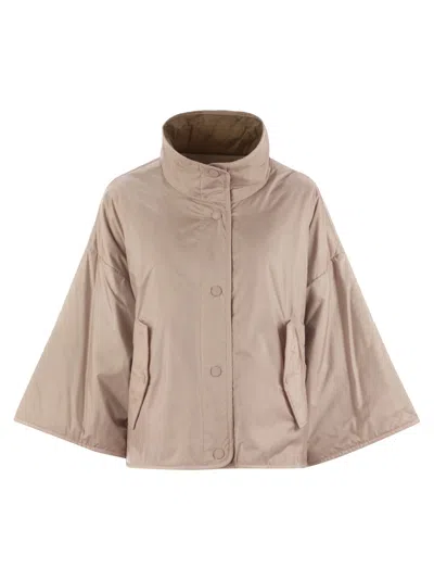 Reversible jacket in non-drip canvas with onion-quilted interior, padded with Luxepad Ultra Fine Insulating Technology Camel-Silk Blend Edition. - Soft line with adjustable drawstring waist - Long sleeves with dropped shoulder - Front closure with logo buttons - Flap and button pockets on one side and welt pockets on the other - Weekend Max Mara logo printed on the inside spur lining DESIGNER ID: 2525486011600 019