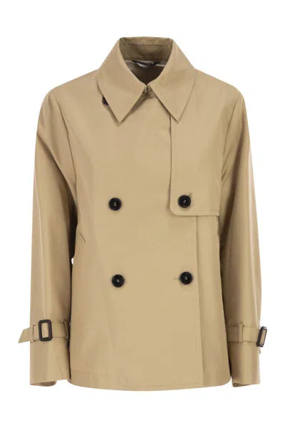Short double-breasted trench coat in water-repellent technical gabardine, featuring a bavolet at the front and toggles at the cuffs. - Flared silhouette with a central vent at the back - Dual-purpose lapel collar and long set-in sleeves - Button fastening - welt pockets at the sides - Weekend Max Mara logo printed on the inner lining of the yoke DESIGNER ID: 2615021051600 003