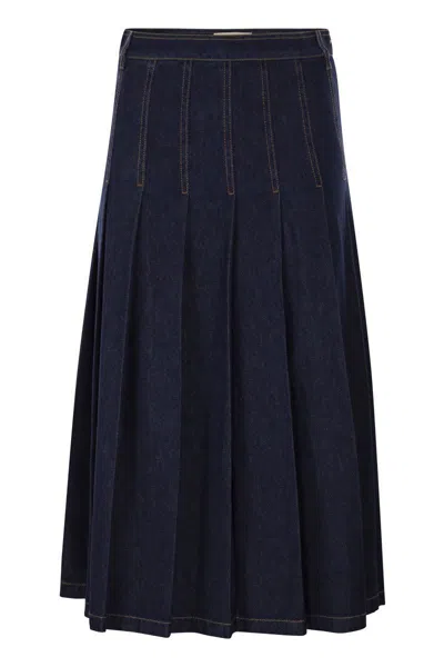 WEEKEND MAX MARA Wkdovale - Denim Pleated Skirt In Blue