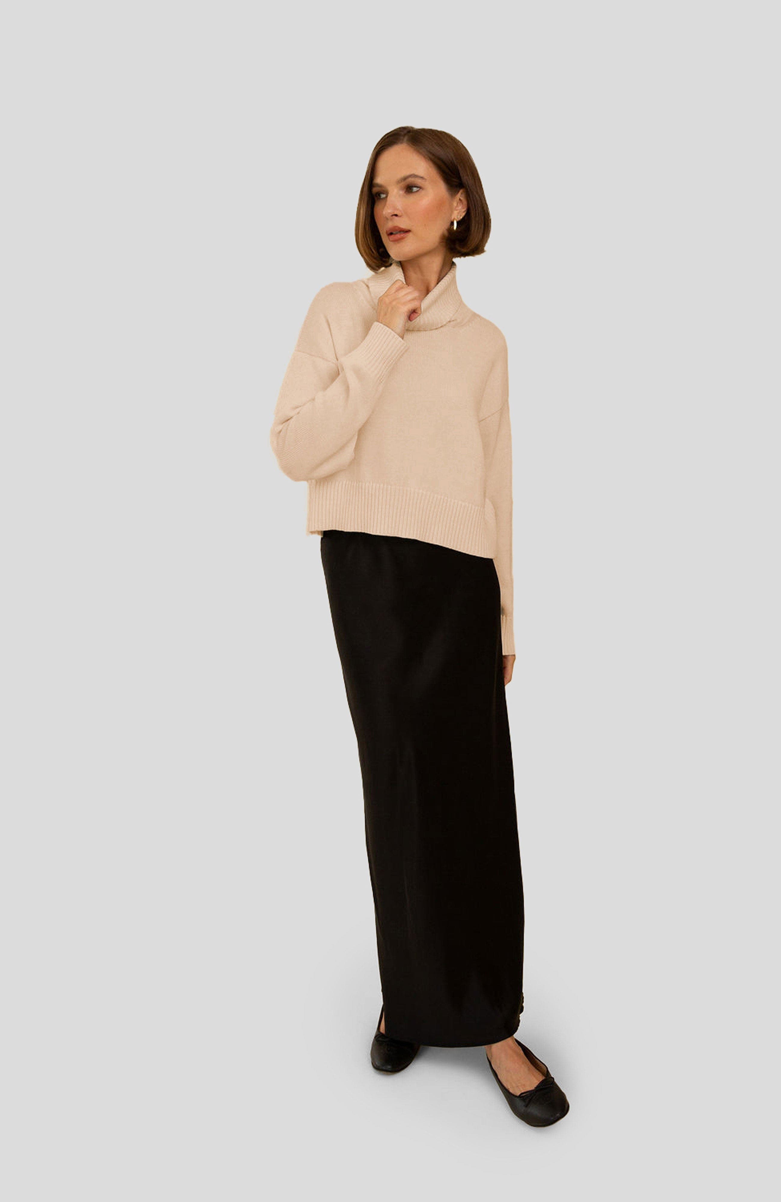 Stay cozy and stylish in the Penelope Pullover. This turtleneck will keep you warm while looking classic and chic. Perfect for layering or wearing on its own, it's a must-have addition to your winter wardrobe. Turtleneck Slight Cropped Length For best results wash on delicate cycle (or hand wash) on cold with eco detergent and lay flat or line dry. Steam to release wrinkles.