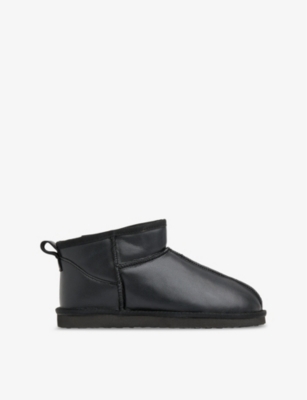 Womens Black Mable Shearling-lined Leather Slippers