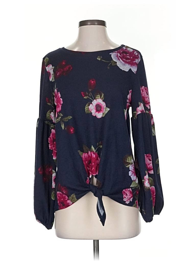 White Birch Pullover Sweater, Size: Small. Item Details: Blue, Tie Neck, Long Sleeve, Women's Tops, Polyester/Spandex