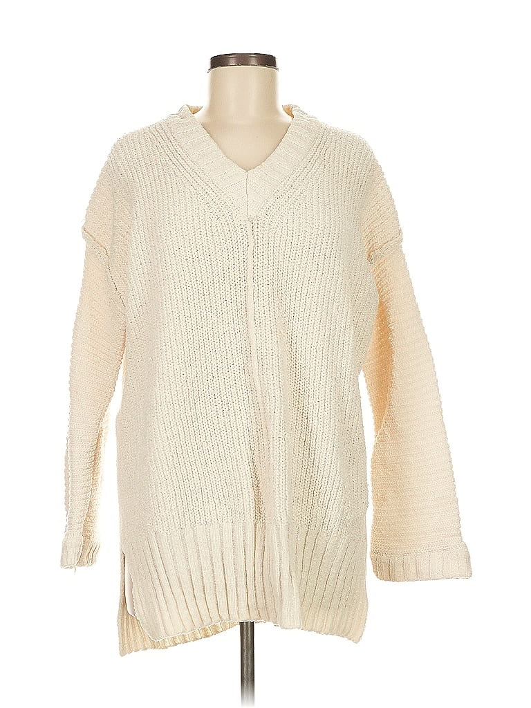 White Birch Pullover Sweater, Size: Medium. Item Details: Ivory, V Neck, Long Sleeve, Women's Tops, 100% Polyester