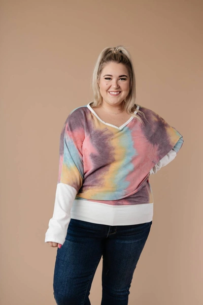 WHITE BIRCH Whitney Wide V Tie Dye Pullover In Multi